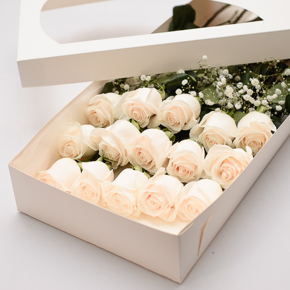 - Caja con 15 rosas blancas premium.Un regalo clásico y elegante.