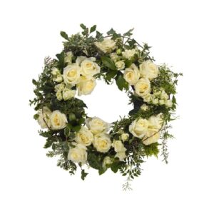Cubre urna, con 50 rosas amarillas, más follajes verdes.