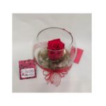 - Rosa fucsia natural preservada liofilizada, en pecera de vidrio. No necesita agua ni luz.
